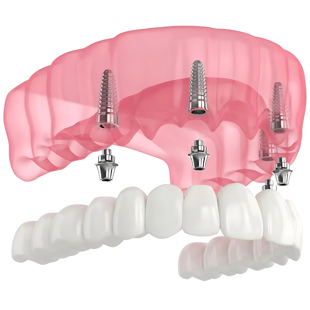 All-on-4 implants replace all missing or failing teeth using just four strategically placed implants, compared to traditional methods that may require eight or more. This makes the procedure less invasive, faster to recover from, and typically more cost-effective.